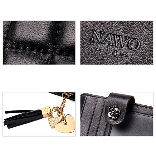 -. Feature : [EXQUISITE MATERIALS] Texture Sheep Leather & Fabric+Synthetic Leather Lining, Hand made by professional artisans.Modern light gold hardware. Metal accessories have been polished, designed to be durable and wear-resistant. / [DIMENSIONS] Short: (L)5.11" x (W)3.74" x (H)1.18" inch / Long: (L)7.67" x (W)3.93" x (H)1.18" inch / [INTERNAL STRUCTURE] Short leather wallet contains 1 banknote pocket + 3 cash pockets + 7 card slots + 1 zipper organ pocket + 1 photo pockets / Long leather wallet contains 2 banknote pocket + 1 zipper banknote pocket + 15 card slots + 2 photo pockets. Large capacity designed, this bag comfortably holds cards, ID card, cash, coins or other small things. Well organizer. / [FASHION FOCUS] We have 2 size (Short, Long) and 5 colors, all kind of colors are beautiful and stylish, you can choose any color you like. Hand made by professional artisans. Clear fashion texture, with simple styling, the handbag appearance concise and atmosphere, powerful at the same time. Fully lined interior includes inside pocket, detail stitching matches the bag color. / [ATTENTIONS] NAWO is an US Registered Trademark and our ONLY Authorized dealer is NAWO. Please pay attention to avoid purchasing those COUNTERFEITS from other sellers, 100% genuine guarantee from NAWO. Unauthorized sale without permission,we will investigated for legal responsibility.