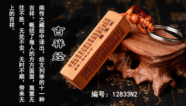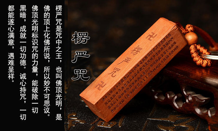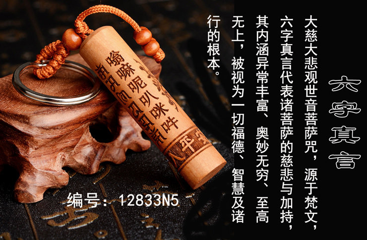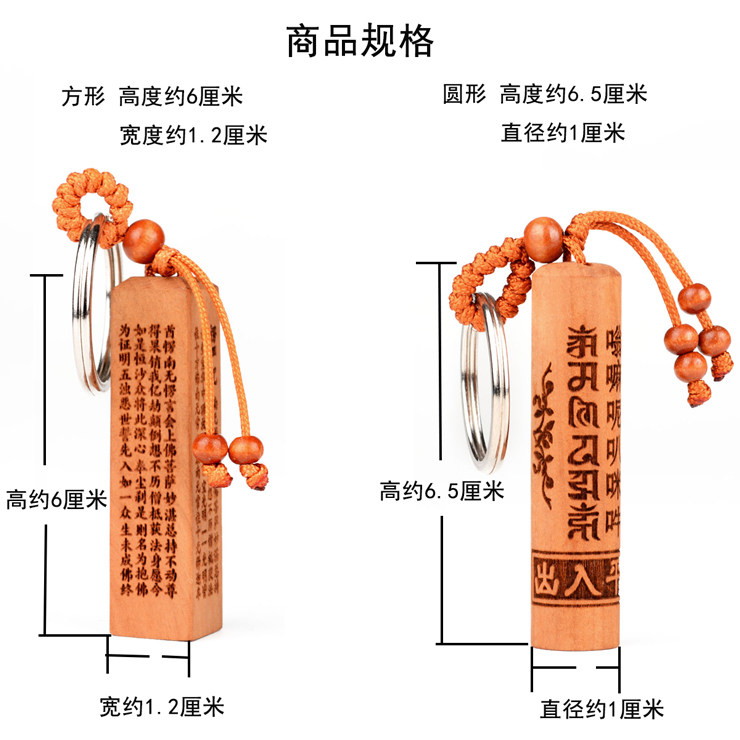 天然桃木钥匙扣挂件 保平安挂饰 大悲咒吉祥经六字真言