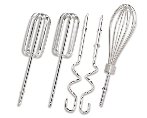 62633R Features: Product Type: -Hand mixer. Color: -Red, Chrome. Material: -Plastic/Metal. Number of Items Included: -7. Accessory Type: -Attachment set. -There is a cord storage. Generic Specifications: -6 Speeds with QuickBurst button. -275 Watts peak power. Dimensions: Overall Height - Top to Bottom: -8.4". Overall Width - Side to Side: -3.3". Overall Depth - Front to Back: -9.9". Overall Product Weight: -2.99 lbs.