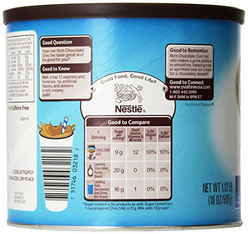 Nestle Ovaltine Rich Chocolate Mix, 18-Ounce Canister (Pack of 3)