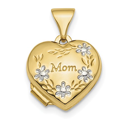 ICECARATS DESIGNER JEWELRY 14K YELLOW GOLD FLORAL MOM HEART PHOTO PENDANT CHARM LOCKET CHAIN NECKLACE THAT HOLDS PICTURES