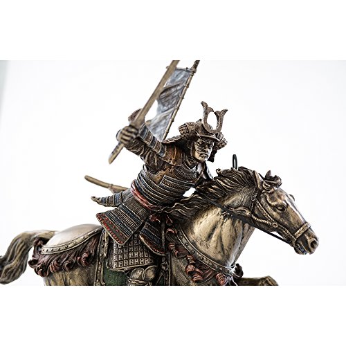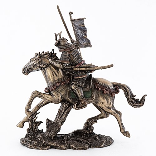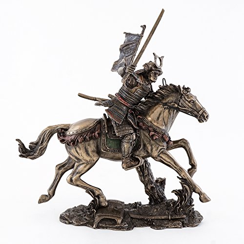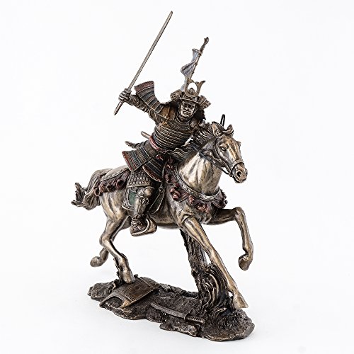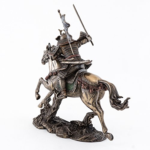 Cold Cast Bronze Samurai Riding Horse with Hand Holding Knife Statue Figurine
