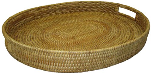 Artifacts Trading Company Rattan Medium Oval Tray with Cutout Handles, 18" L x 15" W x 2" H