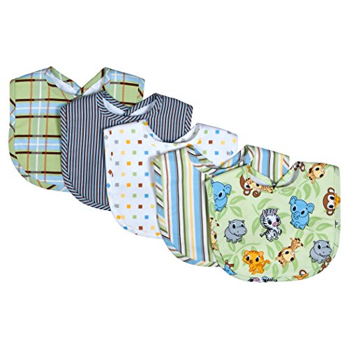 -. Feature : 5 pack with a variety of designs / Each Bib measures 8.5" x 12.5" / 100% cotton machine washable / Perfect giftable set