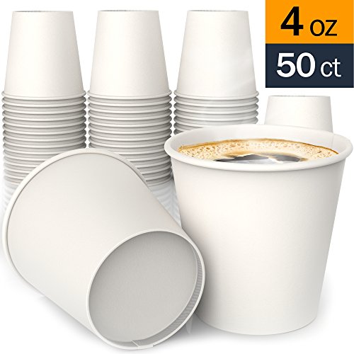 4 oz All-Purpose White Paper Cups (50 ct) - hot Beverage Cup for Coffee, Tea, Water and cold Drinks - ideal Bath Cup - by SheriffDrink