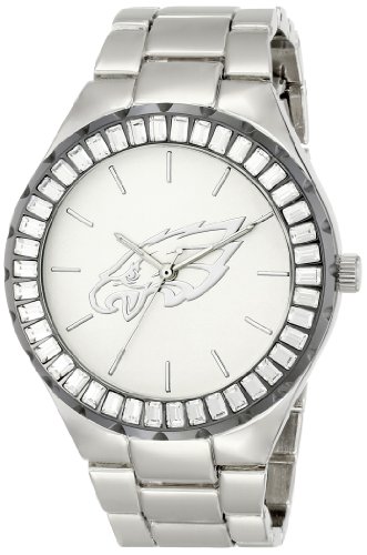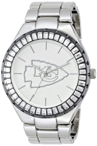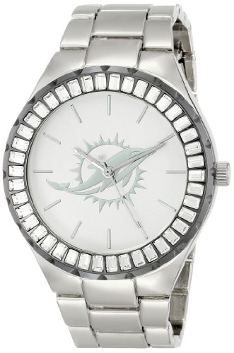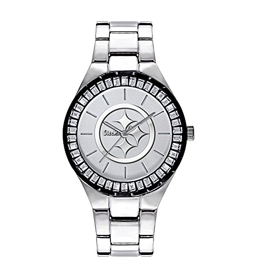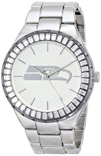 Women's Game Time NFL Winner Watch. A stylish look with 42 baguette stones! Show some pride for your favorite team with this Women's NFL Winner Watch from Game Time! With 42 baguette stones wrapped around the outer bezel, you'll love the look of this timepiece! Plus, it features your favorite team's logo on the dial to really show 'em where your allegiance lies. Features: Alloy bracelet with stylish baguette stones; Silver dial with logo; Stainless steel caseback; Officially licensed team logo; Japanese quartz movement for precise timekeeping; Water resistant down to 99'; Case size: 46mm. State Team. Order yours today! Women's Game Time NFL Winner Watch