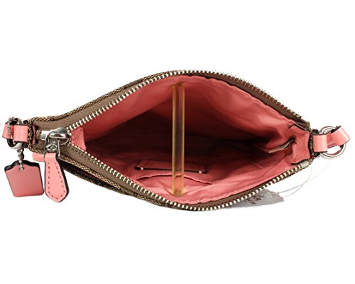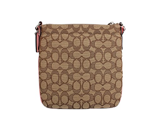 -. Feature : Signature coated canvas; Outside pocket / Inside multifunction pocket / Zip-top closure & fabric lining / Strap with 22 drop for shoulder or crossbody wear / Approximate measurement: 8 (L) x 8 1/2 (H) x 1 1/4 (W)