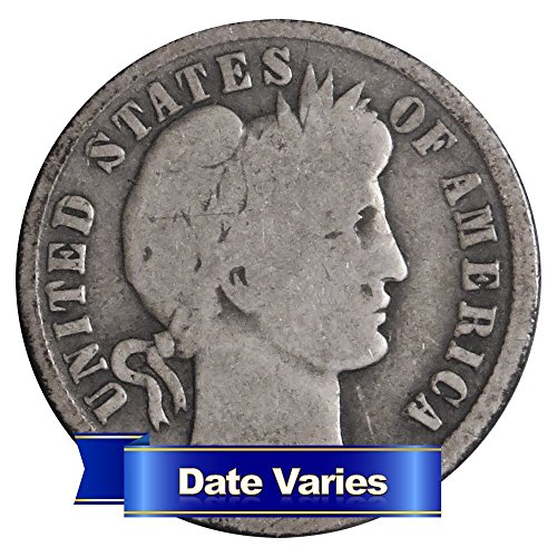 (1892-1916) 90% Silver Barber Dimes ($1 Face Value) 10 different dates 10c Average Circulated