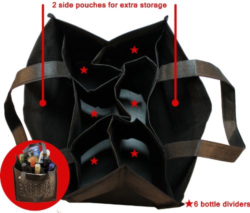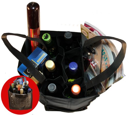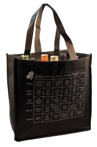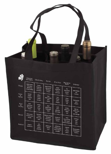 6-Bottle Wine Tote Bag with Storage Compartents and Imprinted Food and Wine Pairing Chart, Quantity 1, Black