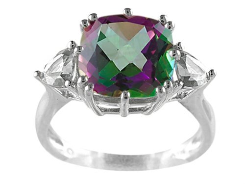 -. Title : 10x10mm Antique Shaped Mystic Topaz and White Topaz Ring
