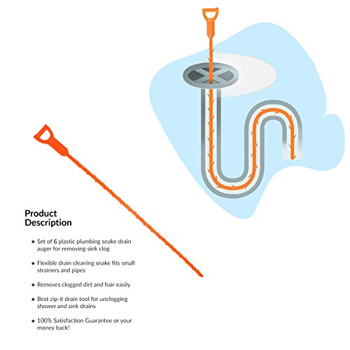 Drain Snake 6 Pack Bchoice Drain Hair Colg Remover for Tub Kitchen Shower, Drain Cleaner - 19,6 Inch+ Free Cleaning Sponge