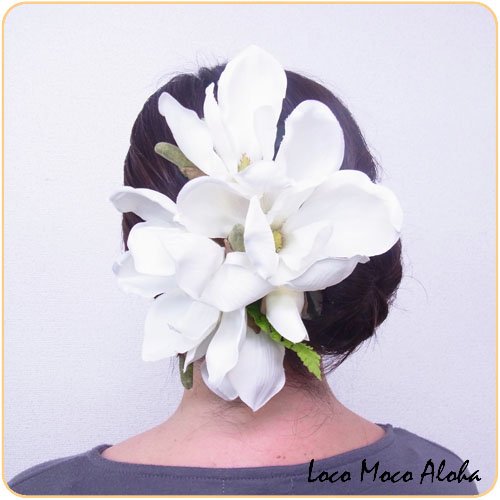 -. Feature : ■ハワイアンジュエリー専門ブランド【 LocoMocoAloha ロコモコアロハ 】アクセサリー。安心してご愛着いただくため、責任を持って品質を保証する証しと、商品の取扱いに関する注意書きが記された保証書をお付けいたします。 / ■商品情報:フラダンスのレッスンやホイケなどの発表会・舞台をとても華やかに演出してくれる髪飾りです。 1点づつ心をこめてハンドメイドでお作りしております。 花材はホワイト(白)のマグノリアになります。 大小4輪のマグノリアのお花がついており、上品な仕上がりになっております。 素材:シルクフラワー / ■サイズ:横:約24cm・幅:約18cm(一番広い部分)ハンドメイドの為、多少の誤差がございます。 / ■付属品:LocoMocoAlohaオリジナル巾着ポーチ(通常梱包の場合) / ■プレゼント梱包:プレゼント梱包をご希望の場合は、ショッピングカートの「注文内容を確認・変更する」のページで 「ギフトの設定」をクリックしていただき、チェックをお入れください。無料プレゼント梱包と有料プレゼント梱包の2種類がございます。