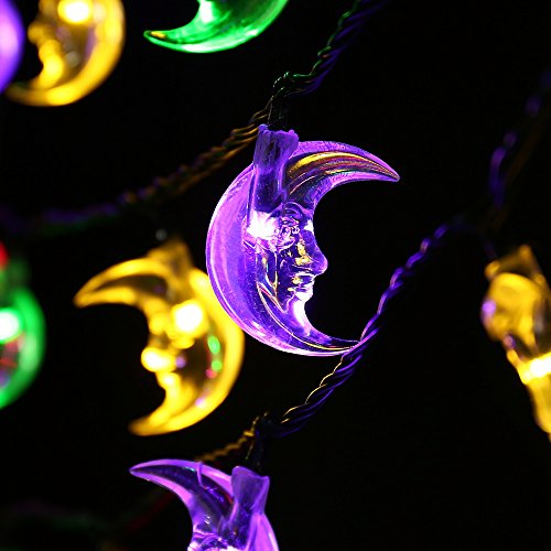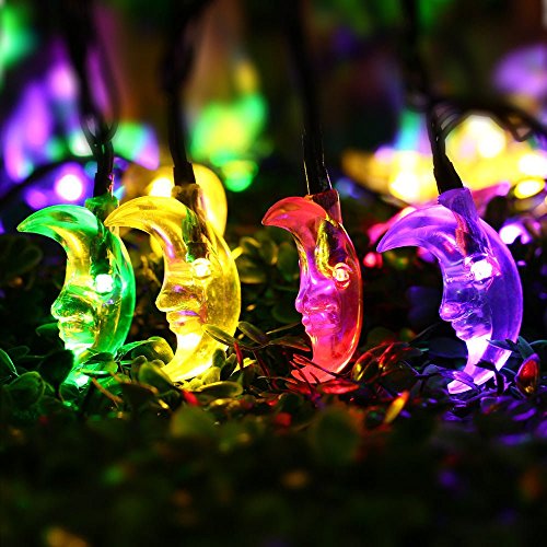 LuckLED 20ft 30 LED Moon Solar String Christmas Lights with Sensor (Multi-Color)