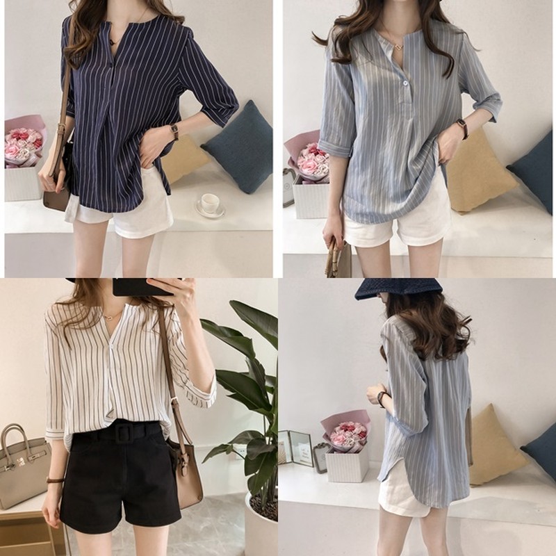 | 肌触りのいいコットンのブラウス♡ ストライプで細見え効果抜群♬ 一枚で着回しのきくアイテムです♡ *サイズ(cm)* M:着丈71.0肩幅38.5バスト96.0袖丈32.0 L:着丈72.0肩幅40.0バスト102.0袖丈32.5 XL:着丈73.0肩幅41.5バスト108.0袖丈33.0 2XL:着丈74.0肩幅43.0バスト114.0袖丈33.5 3XL:着丈75.0肩幅45.5バスト120.0袖丈34.0 4XL:着丈76.0肩幅47.0バスト122.0袖丈34.5 *カラー* ブラック グレー ホワイト 【商品について】