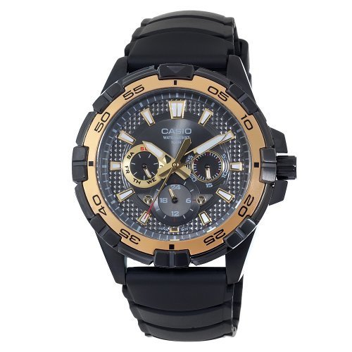 -. Title : Casio Men's MTD1069B-1A1 Round Analog Black and Gold Dial and Black Resin Strap Watch