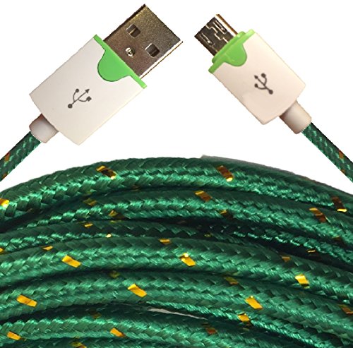 CablesFrLess 10ft Braided High Quality Durable Micro B USB Charging / Data Sync Cable fits Android Phones and Tablets (Forest Green)
