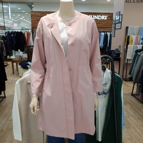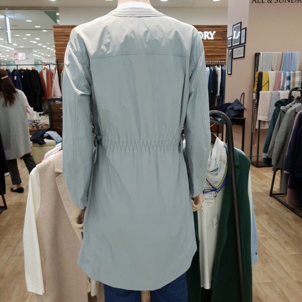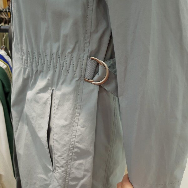허리스트링 장식이 멋스러운라운트 바바리코트입니다
