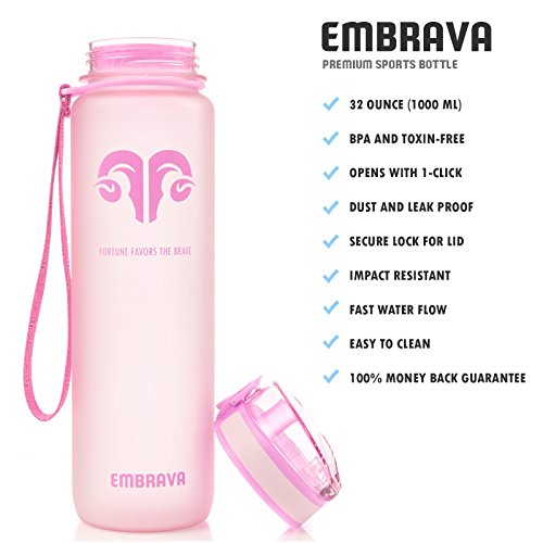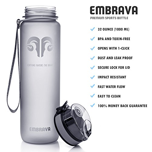 -. Feature : ★ THE BETTER BOTTLE - What is quality? For us at Embrava, it's hard wearing, BPA Free Tritan Co-Polyester and premium craftsmanship. That's what makes up our superior Sports Water Bottle. Our quality paired with unbeatable customer service makes us the ONLY choice for premium plastic water bottles, ideal for all kinds of sports and outdoor activities. / ★ IT'S IN OUR STYLE - From our ergonomic design to our dust-proof/leak-proof lid, every part of our water bottles is designed with you in mind! With a tough carry-strap and a special reflective frosted casing that reacts uniquely to your environment, it is both stylish and convenient to use, and each bottle comes in a FREE Gift Box making for a fantastic gift option! / ★ THE DURABLE DIFFERENCE - We offer the same pure taste that those glass water bottles do, but with the added benefit of shatter resistant durability. Our spill proof lid is a marvel of ingenuity and effectiveness. With one push of a button, you're on your way to healthy hydration. / ★ ADDED BONUS - You'll also be receiving our "Hydration for Athletes" guide for free. This 10 pages long PDF guide will help you learn the optimal levels of hydration necessary for reaching peak performance! We'll teach you to hydrate properly for optimal results while keeping your water nearby! Knowing the right way to hydrate is just as important as owning a great water bottle! / ★ GUARANTEED - We know you have options here, and we want to make the best choice the easiest one, and that's why we offer a 100% Satisfaction Gaurantee! If for any reason our product doesn't meet your standards, just send it back our way for a replacement or a full refund! The choice will be yours!