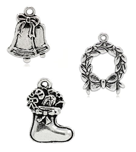 Christmas Charm Pendants 90 Pack - Wreath, Stocking and Bells (30 of each)