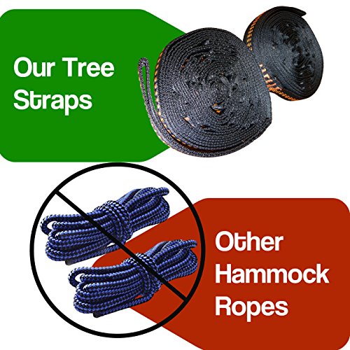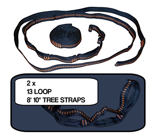 YOUR COMPLETE MULTI-USE HAMMOCK VALUE PACK INCLUDES EVERYTHING YOU WERE LOOKING FOR IN A CAMPING HAMMOCK 2 Heavy Duty 8 feet 10 inch long 13 Loop Adjustable Hammock Tree Straps for Super Easy Setup and Smooth Edge Aluminum Carabiners that Won’t shred your Tree Straps like most Sharp Edged Steel Carabiners will.