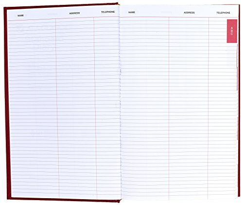 Full year calendar on the inside front cover; name and address pages; monthly expense summary; Julian dates; 8.19 x 13.44 inch page size; 8.62 x 13.75 x 1.44 inches overall