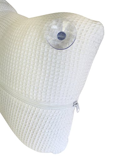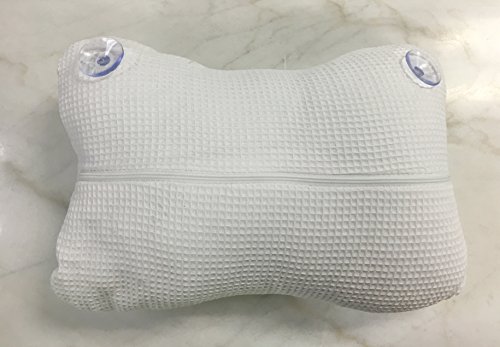 Studio : Clover Spa Publisher : Clover Spa Product Description The ultimate bathing accessory, this Soft Cloth Bath Pillow features a cotton blend waffle texture fabric with two strong suction cups that attach to your bathtub to enhance relaxation. Cover is removable and washable. Measures approximately 13.7" x 9.8". Comes packaged with a wrap around. 0