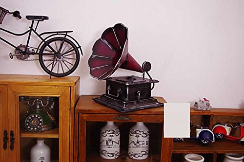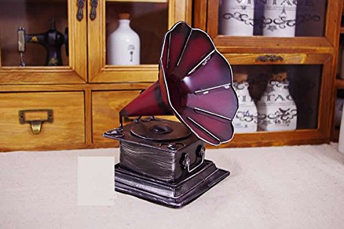 Vintage Handmade Tin Metal Art Bar Decor Model Phonograph Vinyl Record Player (A Wine)