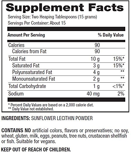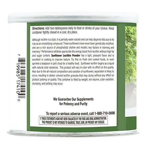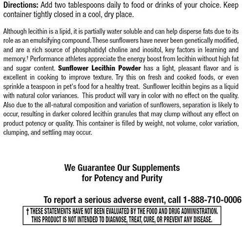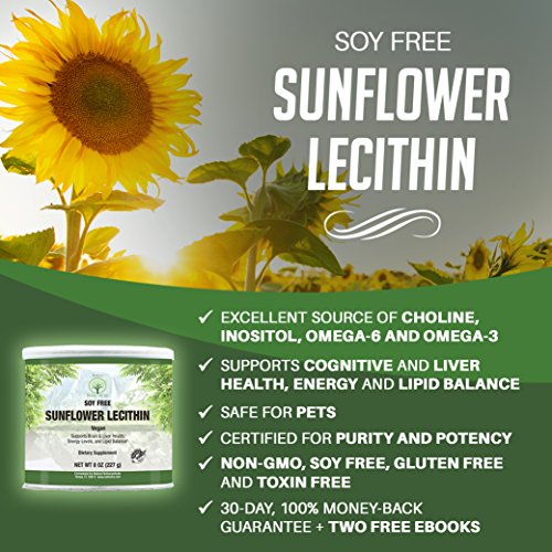 SUPPORTS COGNITIVE AND CARDIOVASCULAR HEALTH: Containing choline, inositol, omega-3 and omega-6 fats, sunflower lecithin powder has been shown to benefit and improve cognitive function, lower cholesterol, lower blood pressure and improve liver health. It has also been used to treat stress-related and nervous system disorders. It can also be used as a pet supplement!