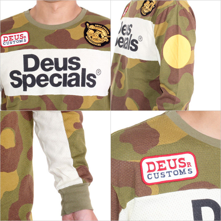 カモフラージュメッシュの切り替えボディに、DEUSオリジナルロゴプリント、そしてパッチがデザインされたレベルの高い仕上がり。