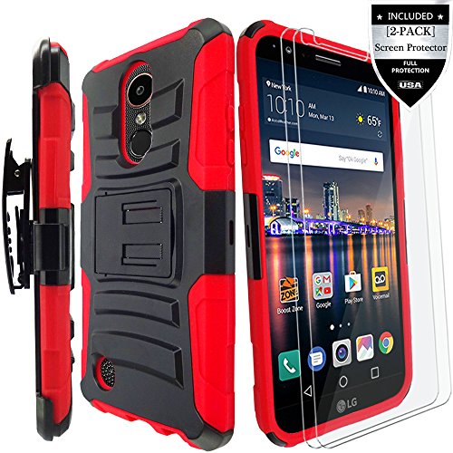 -. Feature : Dual layered hybrid protection with soft silicone double enforced with tough polycarbonate shell with Y-shaped kickstand. / Perfect match and fit for device that also retains easy access to all functionalities, including all buttons, camera, headphone jack, speakers, microphone and charging port. / Innovational design provides quick and easy installation and removal without use of tools. / Holster clip can rotate 180 degrees and holster layer can be easily attached with a satisfying slide-and-lock action. Efficiently designed kickstand offers convenient positioning for media viewing on your device. / Included [2-PACK] Premium HD Screen Protector,For LG K20 Plus / LG K20 V / LG Harmony / LG Grace LTE.