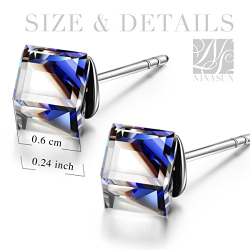 -. Title : Fine Jewelry NINASUN "Hooked On You" 925 Sterling Silver Change Color Cube Stud Earrings Made with SWAROVSKI Crystals