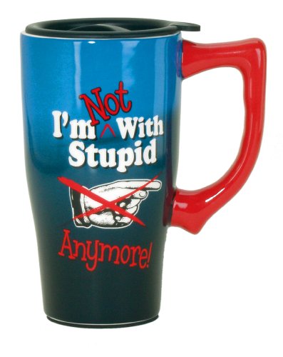 Spoontiques I'm Not with Stupid Travel Mug, Blue