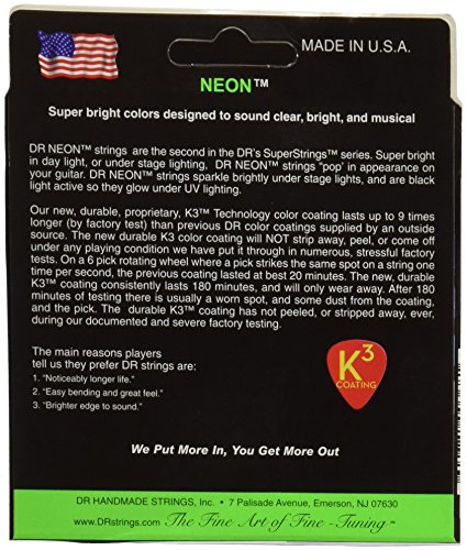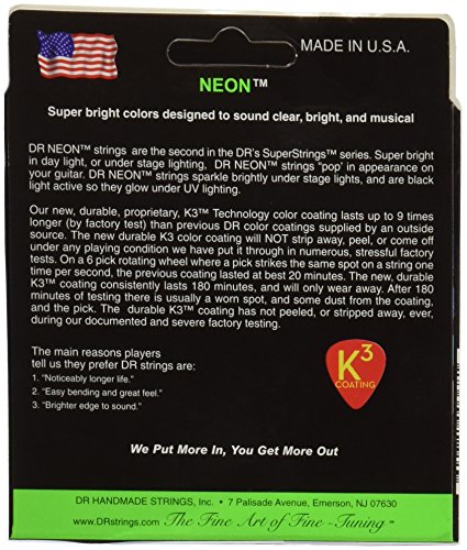 Studio : DR Music Publisher : DR Music Binding : Electronics Product Description NEON Hi-Def Green Electric 11-50. Super bright colors that will sound clear, bright and musical. NEON's are 100% black light active and will glow under ANY UV light source. 0