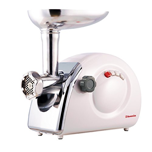 Sunmile SM-G70 ETL Electric Meat Grinder 1000 Watts Max -3 Stainless Steel Grinding Plate and 1 Cutting Blade 3 Sausage Stuffer Maker (White)