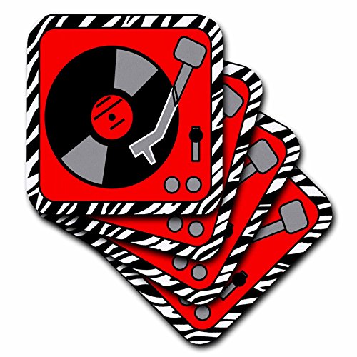 3dRose cst_38192_3 Retro Red & Black Record Player on Zebra Ceramic Tile Coaster (Set of 4)