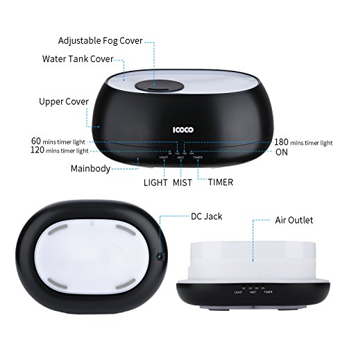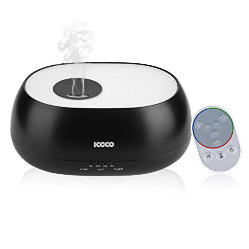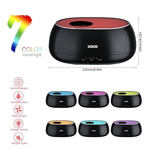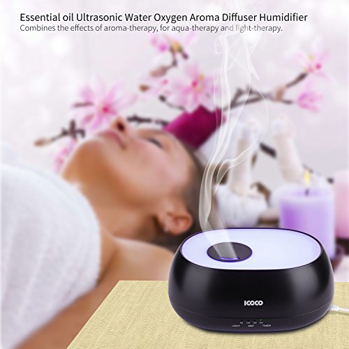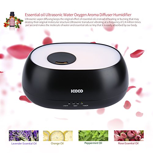 ICOCO Essential Oil Diffuser,500ml Water Oxygen Aroma Ultrasonic Cool Mist Humidifier with 7 Color LED Lights and 4 Timer Mode Therapy for Office Home Bedroom Living Room Study Yoga Spa, Baby Room