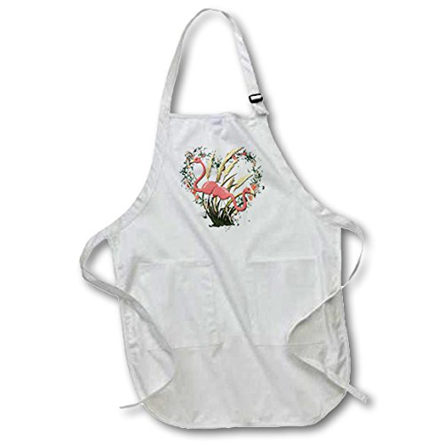 3dRose Pink Flamingos and Beautiful Heart Wreath with Flowers - Full Length Apron, 22 by 30-Inch, White, with Pockets (apr_214634_1)