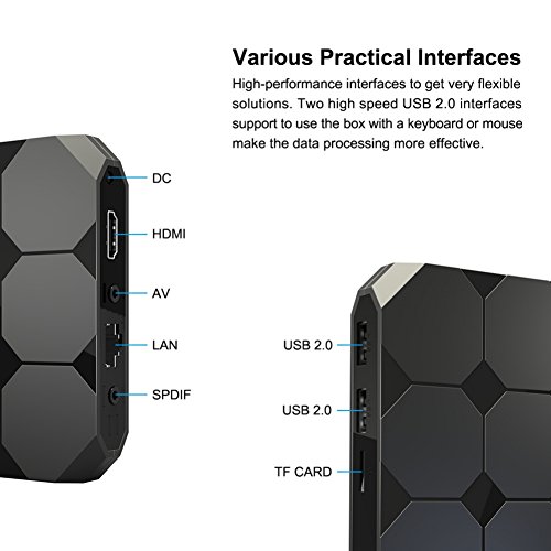 Studio : ESHOWEE Publisher : ESHOWEE Binding : Electronics Product Description Hardware Specifications: CPU:Amlogic S905W up to 2.0 GHz, Quad core ARM Cortex-A53 GPU:Mali-450 penta-core, up to 750MHz (DVFS) SDRAM:2GB DDRIII FLASH:16GB EMMC Flash WiFi:Built in 2.4G WiFi Support IEEE 802.11 b/g/n LAN Ethernet:10/100MRGMII Main Features: OS:Android 7.1 Video decorder:H.265 4K @60fps 10btis, VP9 Profile 2, H.264 4K @30fps, AVS 1080P @60fps Video encorder:H.264 1080P @60fps HDR:HDR 10, HLG HDR OTA£ºSupport OTA update SDHC/SDXC:Support Decoder format:HD MPEG1/2/4,H.265/HEVC , HD AVC/VC-1,RM/RMVB,Xvid/DivX3/4/5/6 ,RealVideo8/9/10 Media format:Avi/Rm/Rmvb/Ts/Vob/Mkv/Mov/ISO/wmv/asf/flv/dat/mpg/mpeg Music format:MP3/WMA/AAC/WAV/OGG/DDP/TrueHD/HD/FLAC/APE Photo format:HD JPEG/BMP/GIF/PNG/TIFF Network Function£ºMiracast,,Airplay,Skype chatting,Picasa,Youtube,Flicker,Facebook,Online movies,etc. Language£ºChinese,English ,Germany ,Japanese, Korea 24 languages etc. Port Specifications£º 1* HDTV output 2.0 4K*2K @ 60Hz 2* High speed USB 2.0,support U DISK and USB HDD 1* TF CARD Support 1~32GB 1* Micro SD card 1* 3.5 Phone out CVBSL/R output 1* RJ45 LAN Ethernet 10M/100M 1*DC 5V/2A Package included£º 1* R1 Tv Box 1* Adapter 1* IR remote control 1* HDTV Cable 1* User Manual