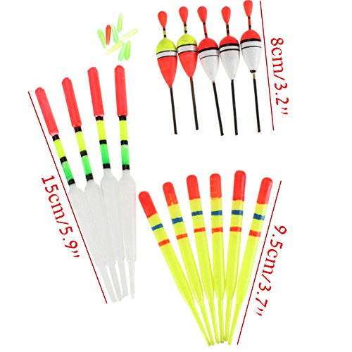 -. Feature : 15pcs fishing floats, assorted size for most type of angling. / Complete with attachment rubbers. / 15pcs including: 5pcs Bobbers Rod(8cm)- 6pcs Yellow Floats Tube(9.5cm)- 4pcs Long Float Slips(15cm) / Package Includes: 1 x 15pcs Fishing Lure Floats