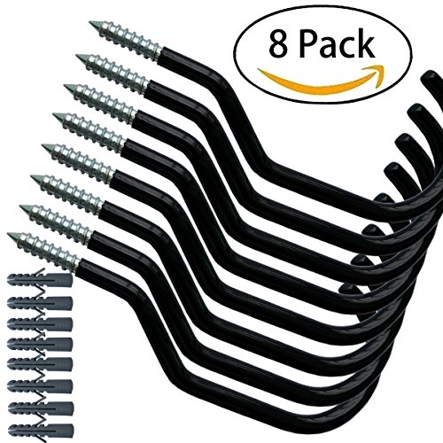 8 Pack Bike Hooks + 8 pack bolts, stainless steel bicycle Storage Hanger Wall Ceiling Mounted for Storage Room fit all type bikes easy on/off black