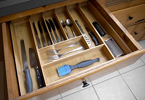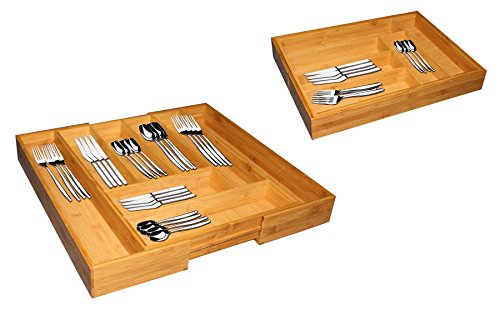 Bamboo expandable cutlery tray for optimal utensil storage