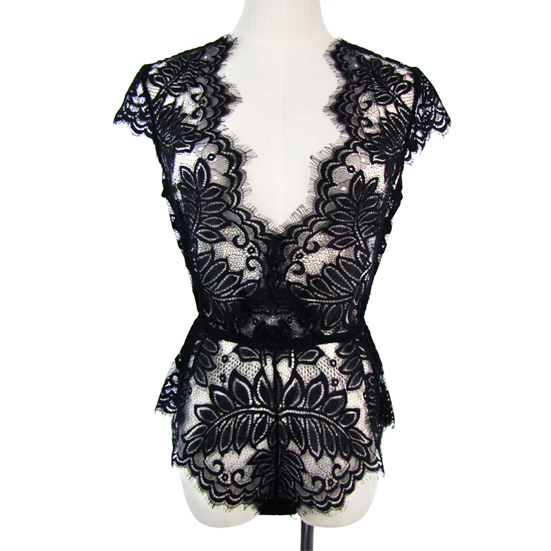 The leaves lace lingerie for women is gorgeous, features a plunging V-neckline and cap sleeves.