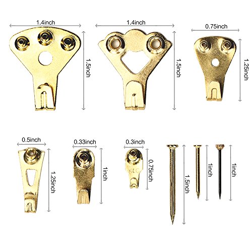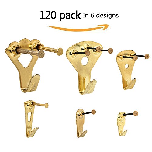 Picture Hangers,Lybmi 120 Pcs Professional Golden Picture Photo Frame Hooks Hanging Kit for Wall Mounting with Pin Nails,Supports 10-100 lbs & Reduce damage to walls