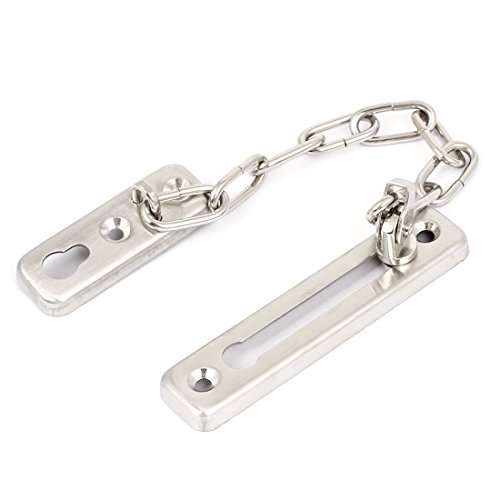 -. Feature : Weight: 119g; Package Content: 1 x Door Chain / Product Name: Door Chain; Material: Stainless Steel / Main Color: Silver Tone; Chain Size: 18x1.3cm/7"x0.51"(L*W) / Bore Hole Dia.: 5mm/0.2" / Total Length: 31cm/12"