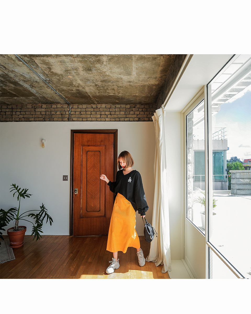 브이넥과 루즈한 핏으로 트렌디한룩으로 연출하기 제격인 맨투맨
