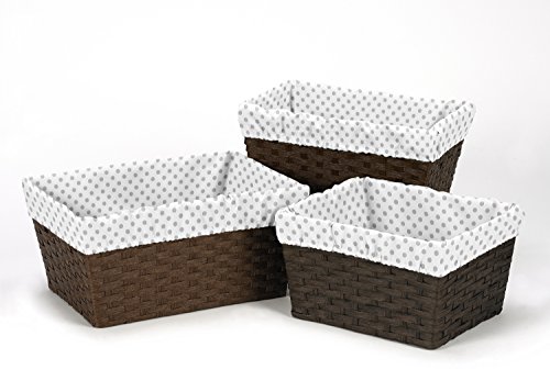 Sweet Jojo Designs 3-Piece Grey and White Polka Dot Fits Most Basket Liners for Watercolor Floral Collection