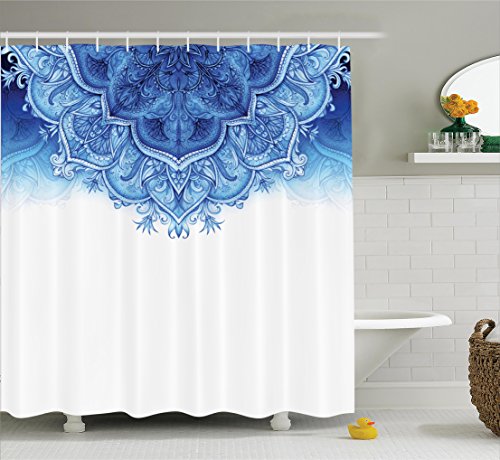 Ambesonne Moroccan Decor Collection, Floral Artwork Vintage Islamic Architectural Decorative Elements Oriental Pattern Print, Polyester Fabric Bathroom Shower Curtain, 75 Inches Long, Blue White