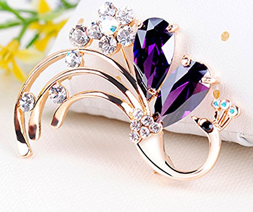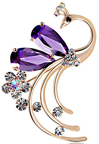 -. Title : Latigerf Women's Peacock Bird Purple Swarovski Elements Crystal Brooches and Pin Gold Plated for Party