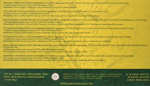 Ingredients: Organic Green Tea, Organic Ganoderma Lucidum. All you got to do is put one sachet into a cup, add hot water, stir and enjoy!