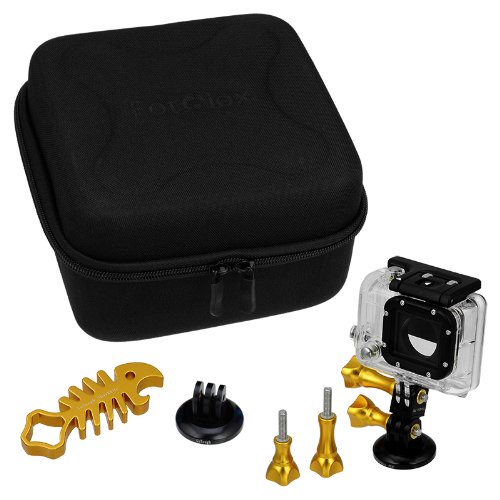 Kit Includes: 1x GoTough CamCase Double, 2x GoTough Medium Thumbscrew, 2x GoTough Short Thumbscrew, 1x GoTough Straight Extender, 2x GoTough Camera Tripod Adapter, 1x GoTough Shark Aluminum Wrench